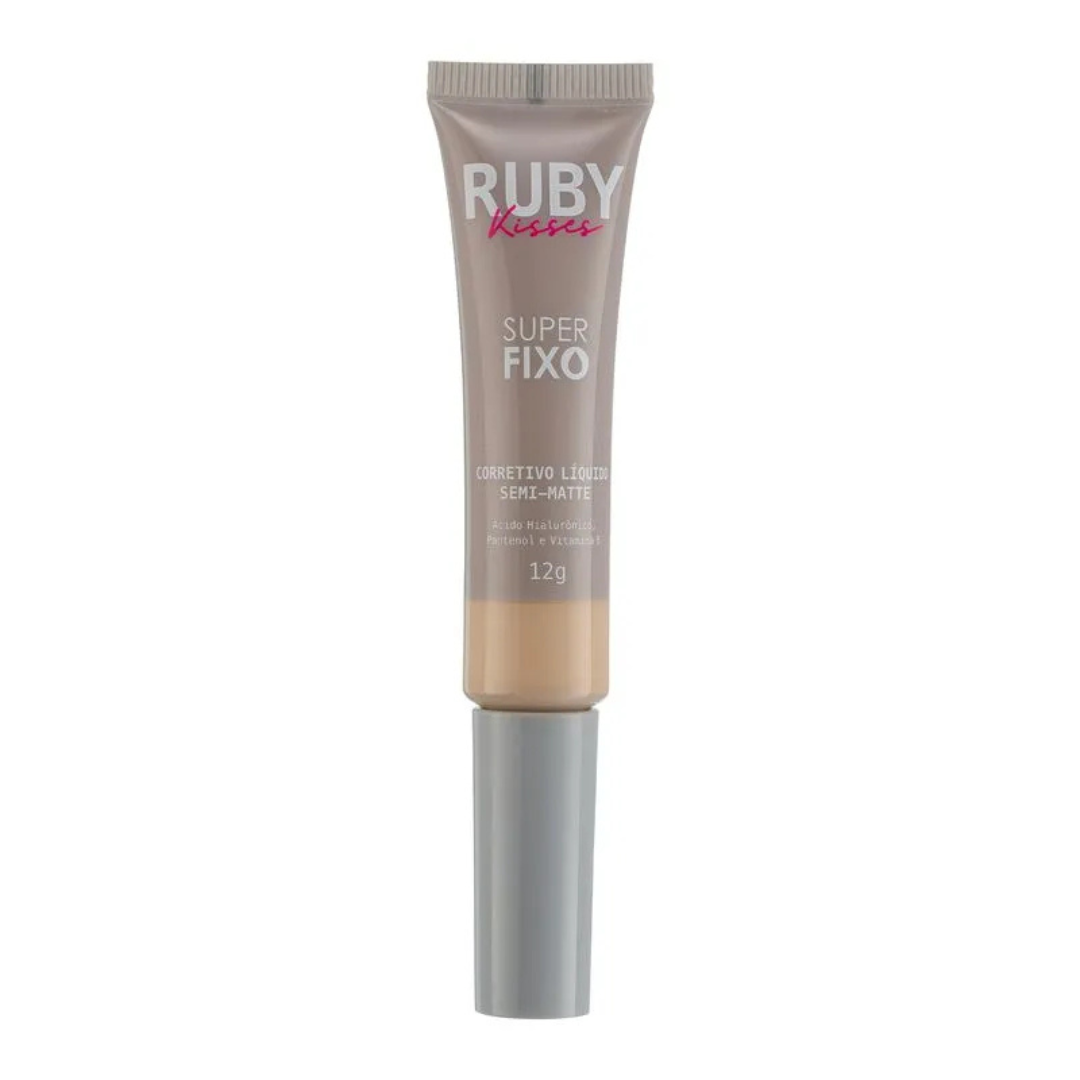 O RUBY KISSES SUPER FIXO CORRETIVO 20 agora eleva sua rotina de beleza com o cuidado da skincare! Este corretivo líquido de alta fixação oferece toque seco e acabamento semi-matte, proporcionando um aspecto aveludado para a pele enquanto disfarça eficazmente imperfeições e uniformiza o tom. Sua nova fórmula é enriquecida com poderosos ativos de skincare: Ácido Hialurônico, conhecido por sua ação hidratante; Pantenol, que auxilia na hidratação e possui propriedades regeneradoras; e Vitamina E, um antioxidante que protege a pele contra radicais livres. Apesar da média cobertura, sua performance é de longa duração, garantindo uma pele impecável por horas. O aplicador com pincel flexível permite uma aplicação leve e precisa, ideal para alcançar todas as áreas do rosto. Disponível em 8 cores (incluindo a tonalidade 20).