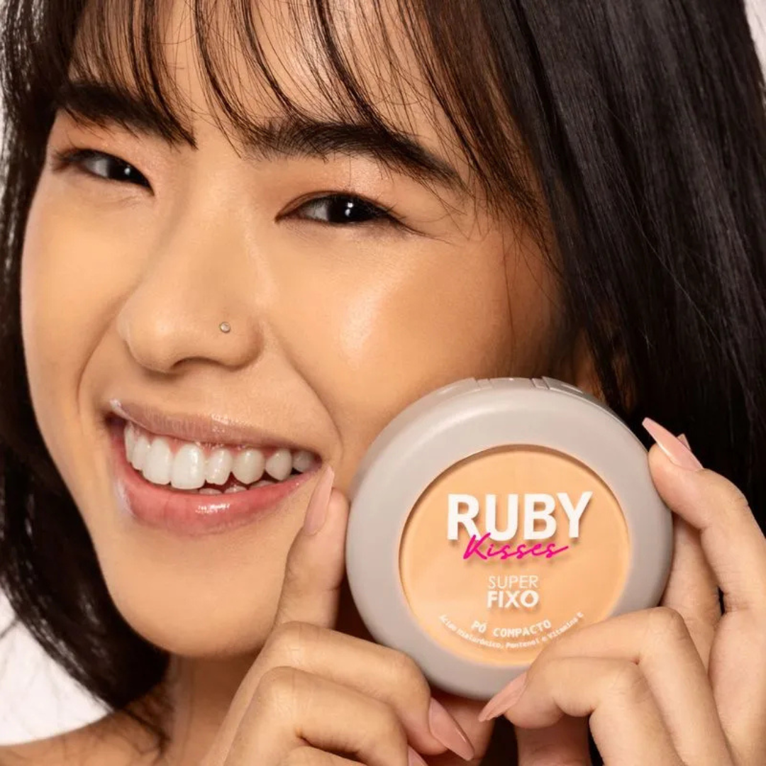 A linha Super Fixo que você já ama agora com ativos de skincare! O Ruby Kisses Super Fixo Pó Compacto é o produto ideal para proporcionar maior cobertura e durabilidade para a sua maquiagem, enquanto cuida da sua pele. Sua nova fórmula é enriquecida com Ácido Hialurônico, Pantenol e Vitamina E, poderosos antioxidantes e hidratantes que ajudam a manter a pele saudável e radiante. Este pó compacto é o queridinho quando o assunto é controlar o brilho e o excesso de oleosidade do rosto, garantindo um efeito matte aveludado impecável. Sua textura ultra leve e fininha não esfarela e adere super bem à pele, evitando aquele efeito “derretido” no visual e mantendo sua maquiagem perfeita por horas. Disponível em 14 cores que contemplam diferentes tons de pele, o Ruby Kisses Super Fixo é vegano e não testado em animais. Além disso, sua embalagem prática já acompanha um espelho e uma esponja premium, o combo perfeito para você levar na bolsa e fazer retoques sempre que quiser, garantindo uma pele impecável em qualquer ocasião.